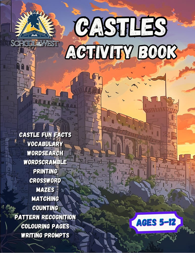 The Castle Activity Book serves as a primer for studying Western Civilization, specifically through vocabulary that teaches the components of medieval European castles . The material is high interest and designed to appeal to a wide age range.